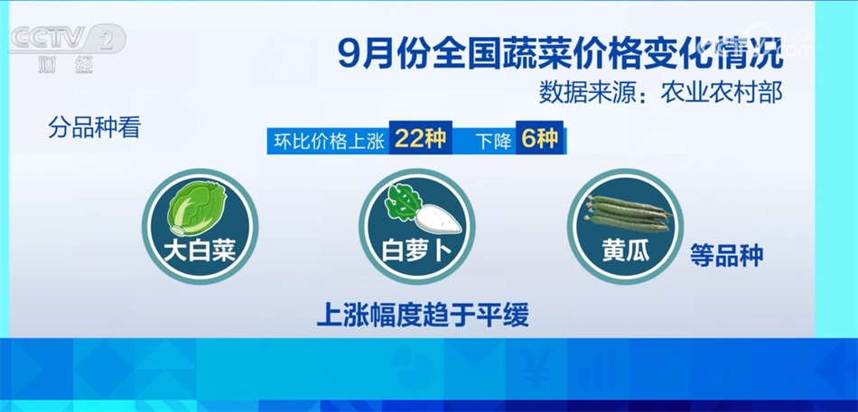 專家表示,9月份全國(guó)蔬菜在田面積同比增長(zhǎng)1.9%,處于年內(nèi)較高水平,穩(wěn)產(chǎn)基礎(chǔ)好,預(yù)計(jì)后期蔬菜價(jià)格逐步轉(zhuǎn)入季節(jié)性下行。