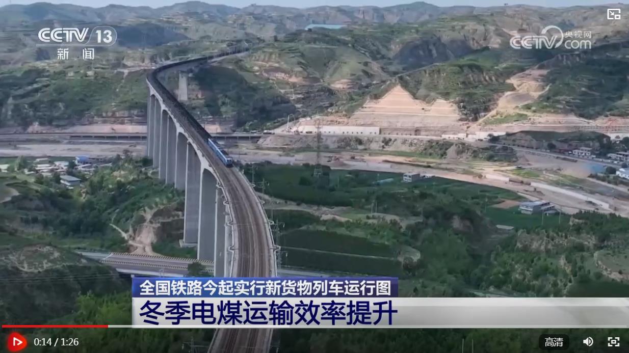 央視網(wǎng)消息:記者從國鐵集團(tuán)獲悉,10月11日起,全國鐵路實行新的貨物列車運行圖。此次調(diào)圖,正值冬季電煤運輸關(guān)鍵期,全國鐵路進(jìn)一步增加了煤炭運輸能力。