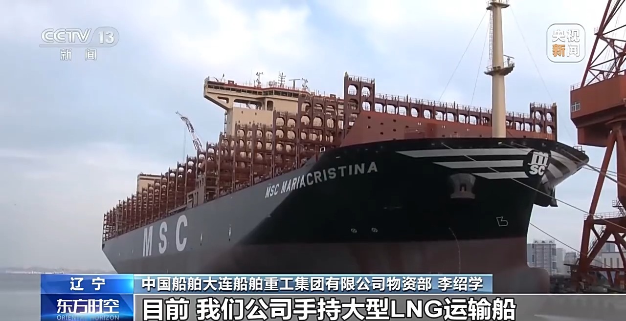這兩天,大連這家船舶公司一艘在建大型液化天然氣(LNG)運(yùn)輸船??吭诖a頭泊位,近千名工人正在進(jìn)行船舶舾裝作業(yè)。在碼頭的另一側(cè),一艘LNG雙燃料集裝箱船正在做交付前最后的調(diào)試。這艘海上“巨無霸”采用天然氣和燃油雙燃料驅(qū)動(dòng),能夠減少碳排放20%以上,減少100%的硫氧化物排放。