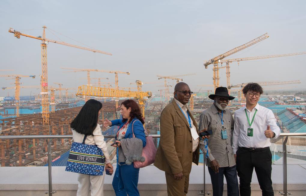10月12日,外國友人參訪雄安新區(qū)啟動區(qū)綜合服務中心。新華社發(fā)(劉尊拴 攝)