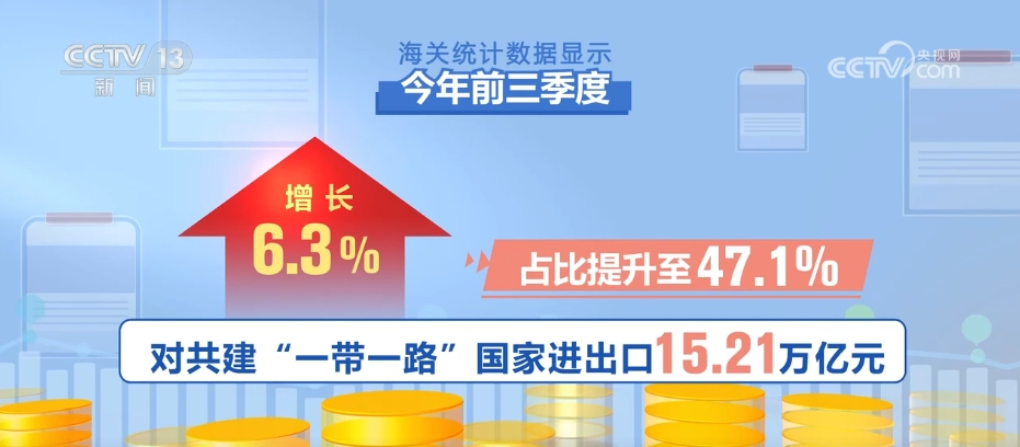 海關(guān)統(tǒng)計(jì)數(shù)據(jù)顯示,今年前三季度,我國市場(chǎng)多元化穩(wěn)步推進(jìn),與全球160多個(gè)國家和地區(qū)貿(mào)易實(shí)現(xiàn)增長(zhǎng)。對(duì)共建“一帶一路”國家進(jìn)出口15.21萬億元,同比增長(zhǎng)6.3%,占比提升至47.1%。對(duì)RCEP其他成員國進(jìn)出口9.63萬億元,增長(zhǎng)4.5%,其中對(duì)東盟進(jìn)出口5.09萬億元,增長(zhǎng)9.4%。同期,對(duì)歐盟、美國分別進(jìn)出口4.18萬億和3.59萬億元,分別增長(zhǎng)0.9%、4.2%。