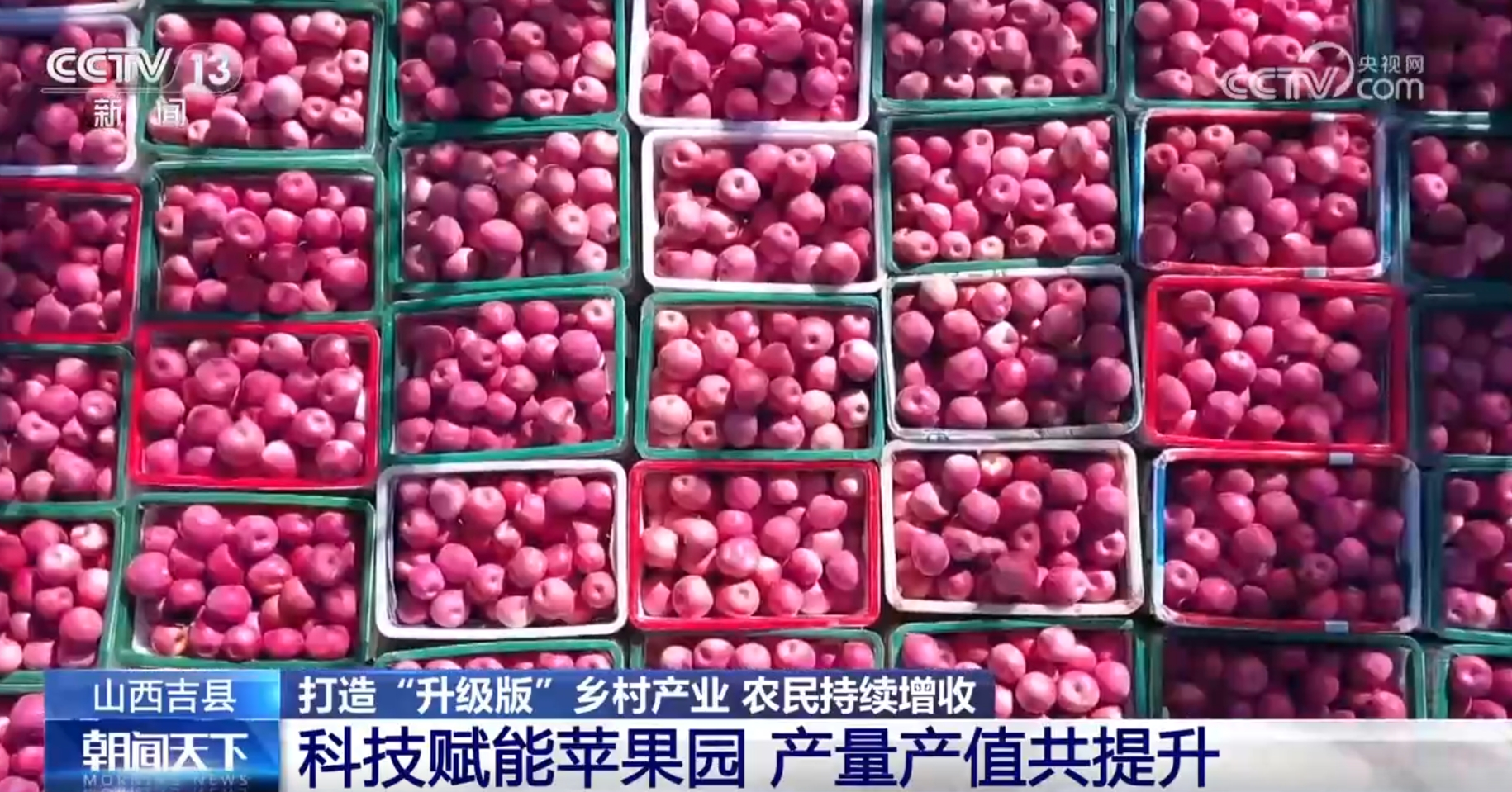 在山西吉縣,蘋(píng)果專(zhuān)業(yè)村占到了當(dāng)?shù)匦姓蹇倲?shù)的80%以上,為了讓蘋(píng)果產(chǎn)業(yè)做強(qiáng),當(dāng)?shù)匾钥萍假x能蘋(píng)果園,通過(guò)大數(shù)據(jù)、云計(jì)算進(jìn)行智能灌溉、精準(zhǔn)施肥,同時(shí)運(yùn)用矮化密植栽培技術(shù)實(shí)現(xiàn)了蘋(píng)果產(chǎn)量和產(chǎn)值的提升,這項(xiàng)技術(shù)已經(jīng)運(yùn)用在全縣5000畝蘋(píng)果地。