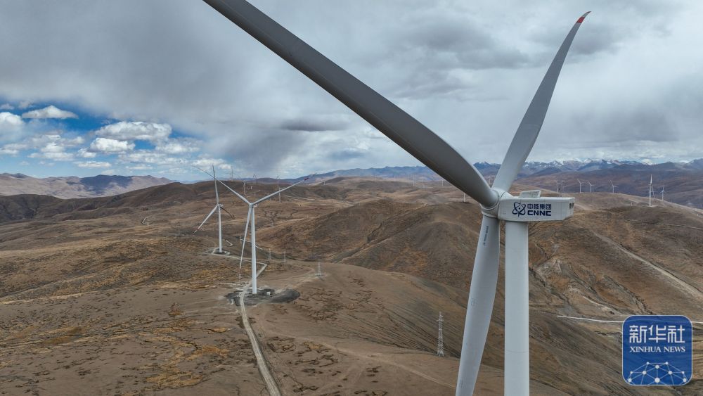 10月17日拍攝的位于西藏日喀則市薩迦縣的風力發(fā)電機組。