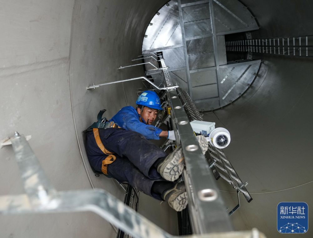 10月17日,工作人員在檢修風機內(nèi)部的監(jiān)控設備。