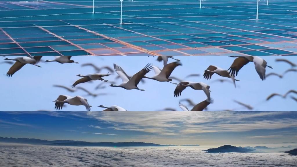 云南永善千畝梯田,一派豐收景象;貴州銅仁,秋日云海景觀浩瀚縹緲;新疆額爾齊斯河流域,成群候鳥(niǎo)飛翔在湖光秋色之中。
