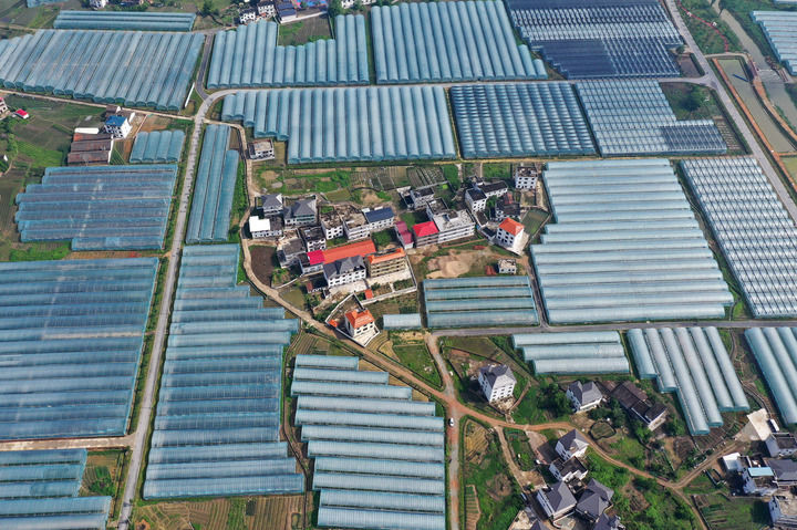 這是江西省贛州市于都縣梓山鎮(zhèn)潭頭村的果蔬種植基地(2021年4月29日攝,無人機(jī)照片)。新華社記者 萬(wàn)象 攝