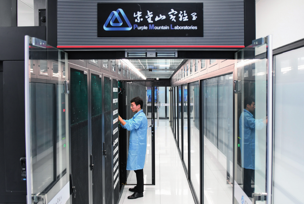 科研人員在紫金山實(shí)驗(yàn)室 6G 綜合實(shí)驗(yàn)室忙碌(2023 年 7 月 6 日攝) 季春鵬攝 / 本刊