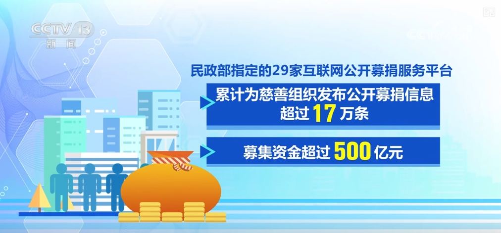 目前,全國共登記認定慈善組織超過1.5萬家,是五年前的三倍;全國累計備案慈善信托2062單,是五年前的十五倍。年度捐贈總額最高突破2000億元,民政部指定的29家互聯(lián)網(wǎng)公開募捐服務平臺累計為慈善組織發(fā)布公開募捐信息超過17萬條,募集資金超過500億元。