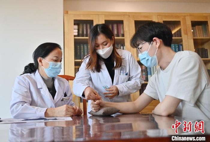 診室里,林玉花拿出針灸針,運(yùn)用捻轉(zhuǎn)與提插等手法為患者針灸治病。經(jīng)過(guò)老師悉心指導(dǎo),這位“95后”泰國(guó)女孩已經(jīng)熟練掌握針灸、拔罐等中醫(yī)治療手段。
