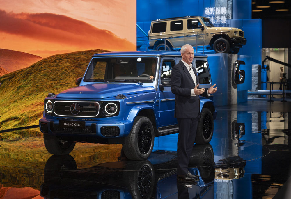 2024年4月25日,在北京中國(guó)國(guó)際展覽中心順義館舉行的2024北京車(chē)展上,梅賽德斯—奔馳集團(tuán)股份公司董事會(huì)成員唐仕凱介紹梅賽德斯—奔馳純電G級(jí)越野車(chē)。新華社記者才揚(yáng)攝