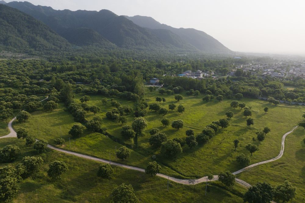 西安市長(zhǎng)安區(qū)子午街道南豆角村的板栗古樹群(2024年5月15日攝,無人機(jī)照片)。新華社記者 邵瑞 攝