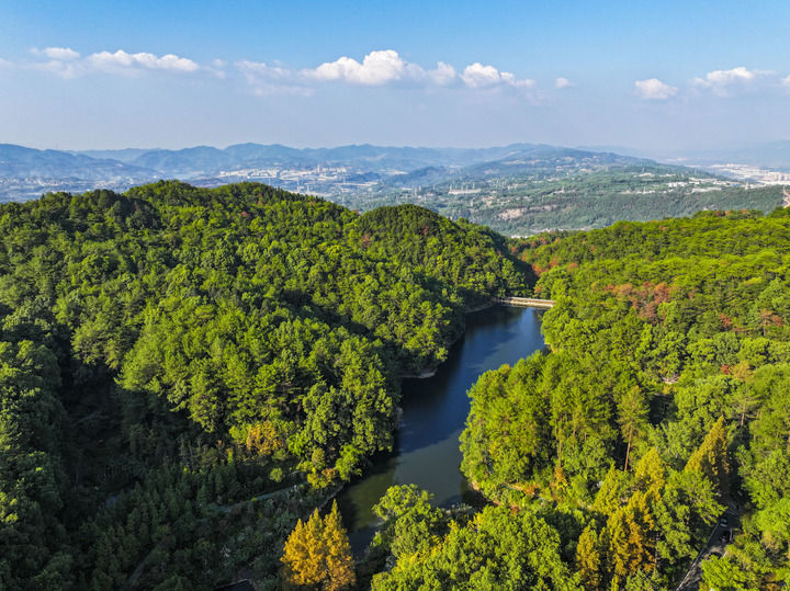 這是2024年10月15日在重慶市北碚區(qū)拍攝的縉云山國(guó)家級(jí)自然保護(hù)區(qū)景象(無人機(jī)照片)。新華社記者 王全超 攝