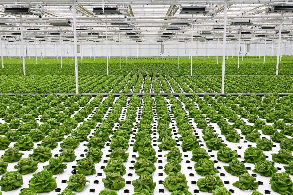 10月26日,楊凌智慧農(nóng)業(yè)示范園智慧溫室內(nèi)通過(guò)無(wú)土栽培技術(shù)種植的蔬菜。新華社記者 鄒競(jìng)一 攝