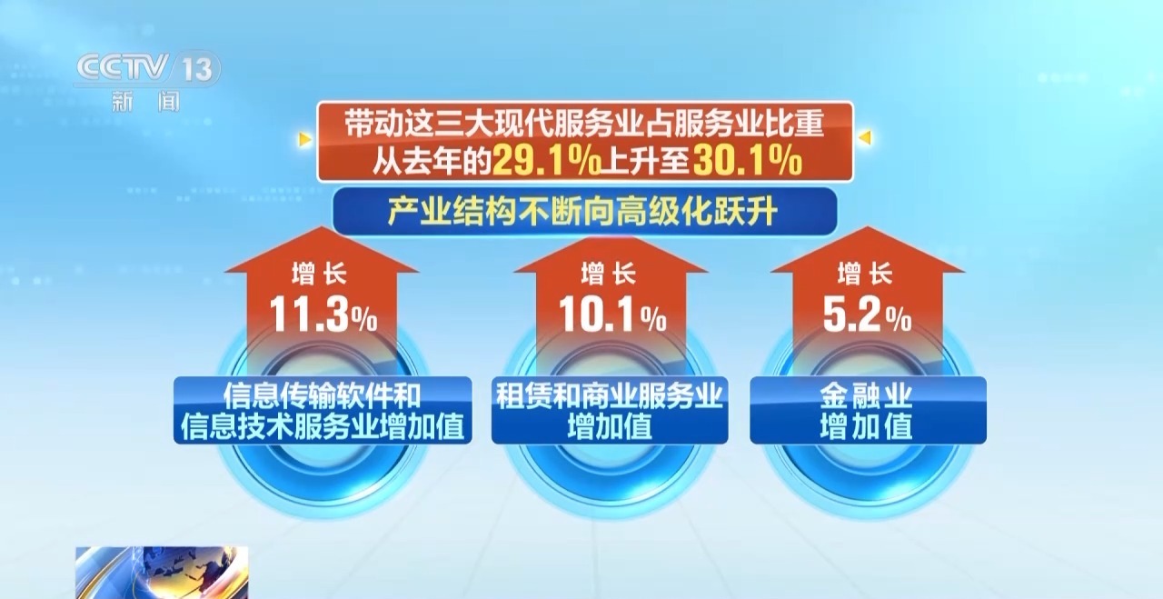產(chǎn)業(yè)結(jié)構(gòu)持續(xù)升級(jí)。前三季度,裝備制造業(yè)增加值占全部規(guī)模以上工業(yè)的比重達(dá)33.8%,已連續(xù)19個(gè)月保持在30%以上。信息傳輸軟件和信息技術(shù)服務(wù)業(yè)、租賃和商業(yè)服務(wù)業(yè)、金融業(yè)增加值分別以11.3%、10.1%和5.2%的速度快速增長,帶動(dòng)這三大現(xiàn)代服務(wù)業(yè)占服務(wù)業(yè)比重從去年的29.1%上升至30.1%,產(chǎn)業(yè)結(jié)構(gòu)不斷向高級(jí)化躍升。