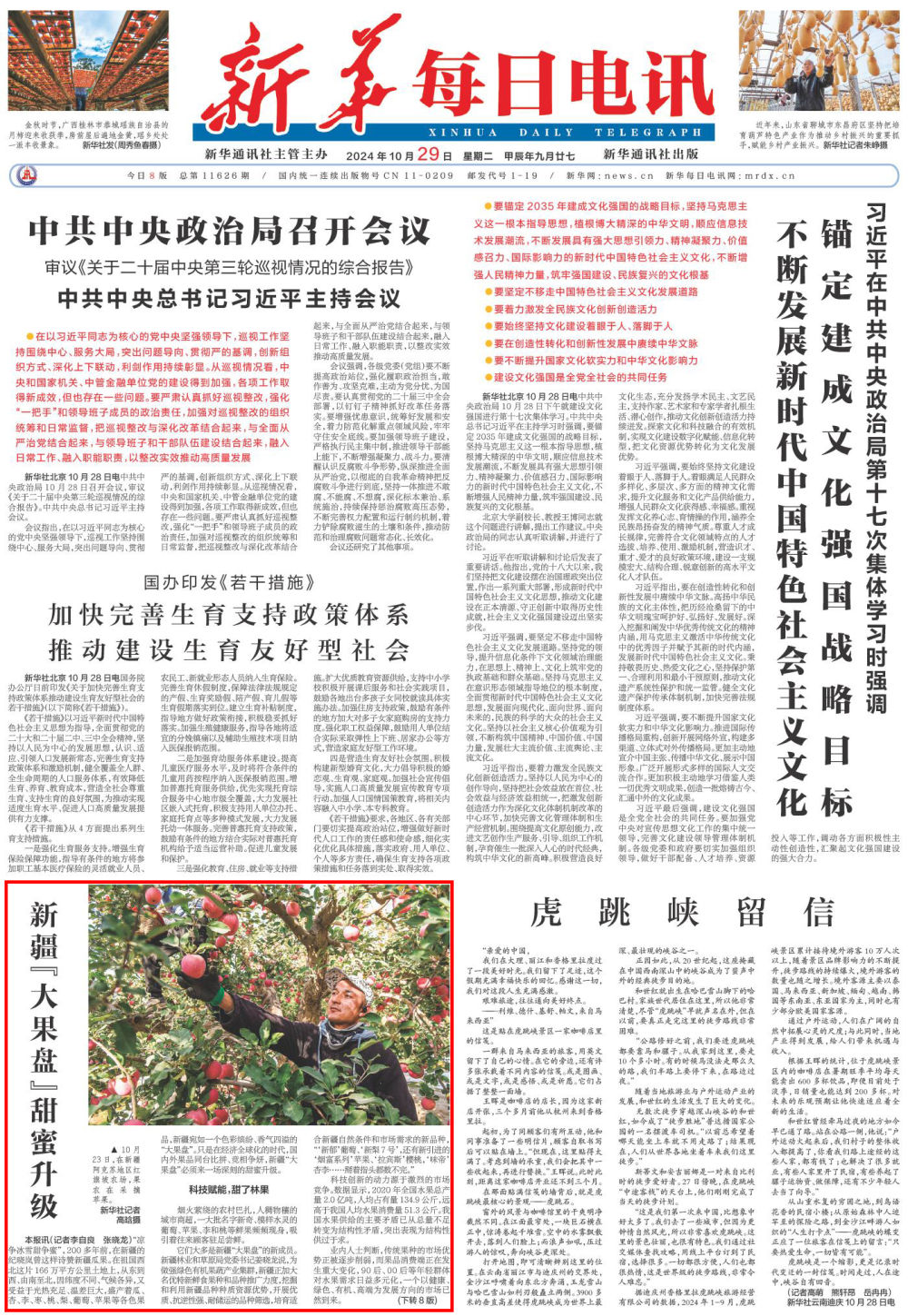 它們大多是新疆“大果盤”的新成員。新疆林業(yè)和草原局黨委書記姜曉龍說,為做強綠色有機果蔬產(chǎn)業(yè)集群,新疆正加大名優(yōu)特新鮮食果種和品種推廣力度,挖掘和利用新疆品種種質(zhì)資源優(yōu)勢,開展優(yōu)質(zhì)、抗逆性強、耐儲運的品種篩選,培育適合新疆自然條件和市場需求的新品種,“‘新郁’葡萄、‘新梨7號’,還有新引進(jìn)的‘煙富系列’蘋果、‘拉賓斯’櫻桃,‘味帝’杏李……掰著指頭都數(shù)不完?!?/p>