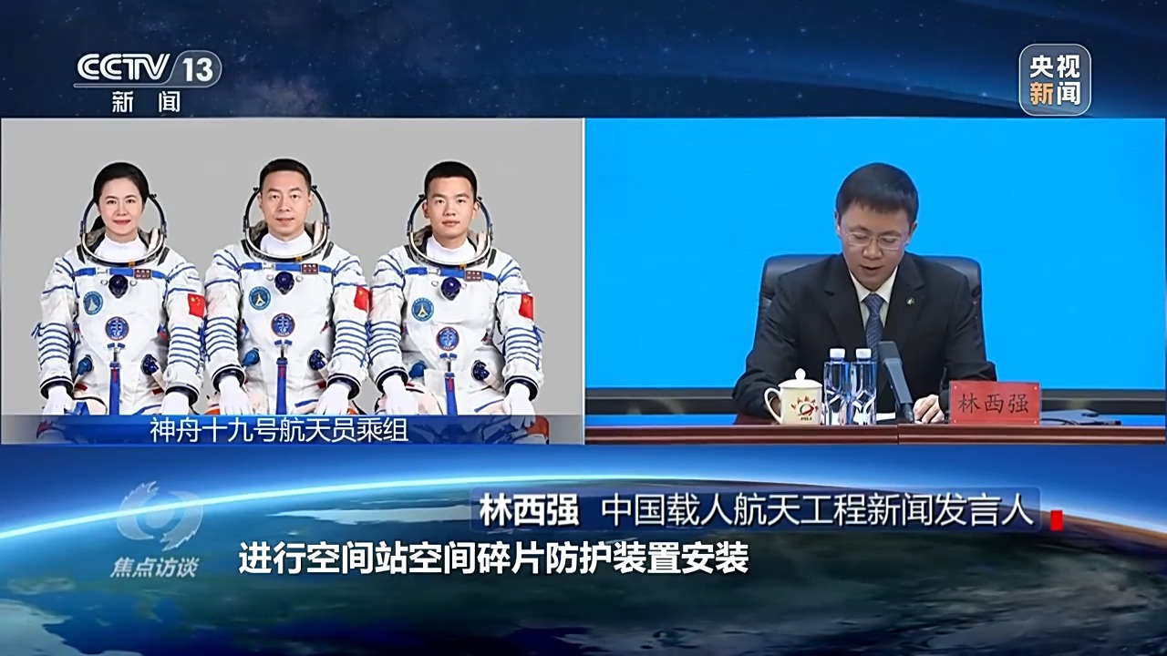 中國載人航天工程新聞發(fā)言人 林西強:此次任務(wù)在空間站駐留約六個月,開展空間科學與應(yīng)用實(試)驗,實施航天員出艙活動及貨物進出艙,進行空間站空間碎片防護裝置安裝,艙外載荷和艙外設(shè)備安裝與回收等任務(wù),開展科普教育和公益活動以及空間搭載試驗。