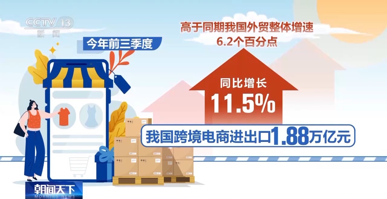 據(jù)海關(guān)總署最新發(fā)布的數(shù)據(jù)顯示,今年前三季度,我國跨境電商進(jìn)出口1.88萬億元,同比增長11.5%,高于同期我國外貿(mào)整體增速6.2個百分點(diǎn),正成為我國外貿(mào)增長新動能。