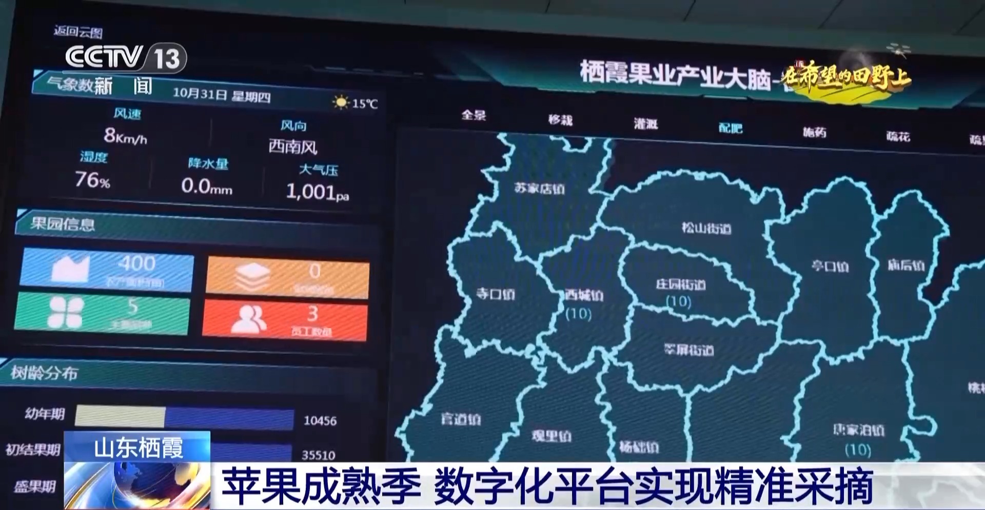 棲霞市供銷合作社聯(lián)合社負(fù)責(zé)人 李國勇:通過這個(gè)大屏,我們可以清楚地看到果樹的生長情況,平臺(tái)也會(huì)將果樹生長情況相關(guān)信息通報(bào)給果農(nóng)進(jìn)行精準(zhǔn)采摘。