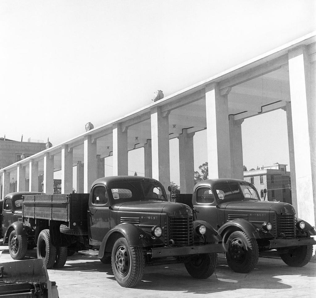 1957年,首屆廣交會上展出的解放牌汽車。新華社發(fā)