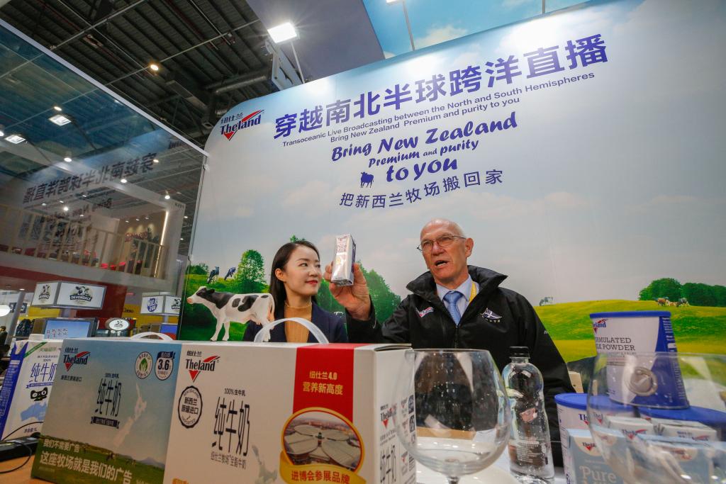 2020年11月7日,新西蘭紐仕蘭乳業(yè)全球研發(fā)總經(jīng)理羅伊在第三屆進博會上直播帶貨。新華社記者 張玉薇 攝
