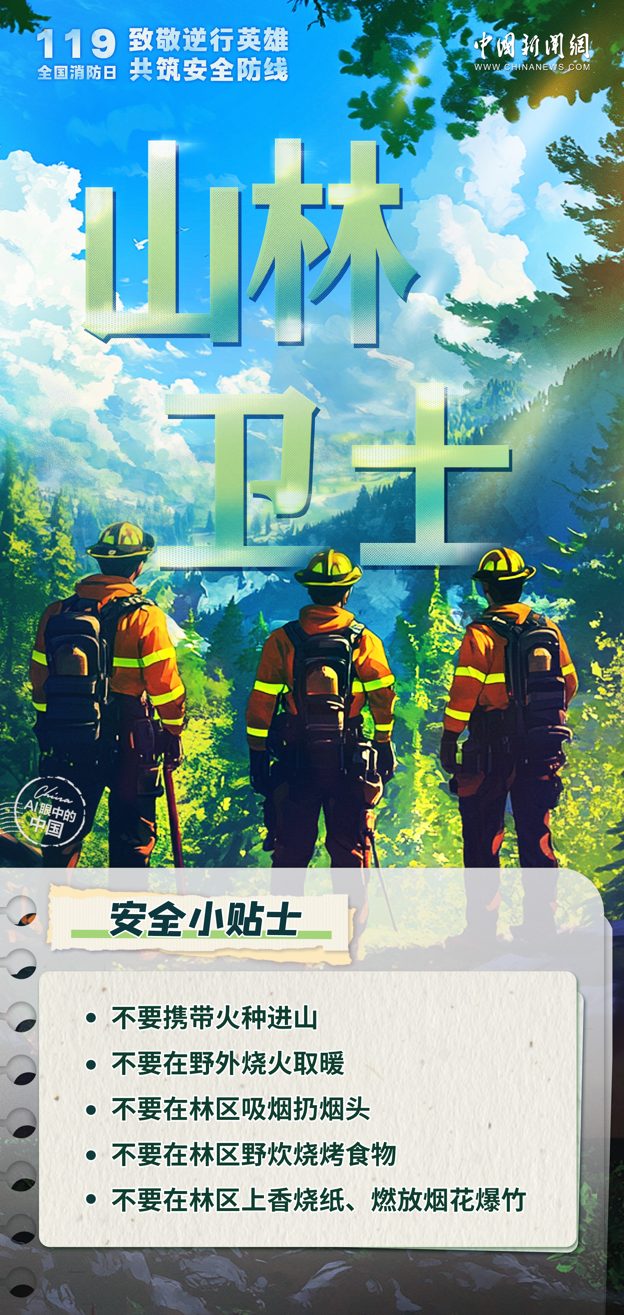 他們是逆火而行的英雄,是守護(hù)生命與財(cái)產(chǎn)的無畏戰(zhàn)士。無論是城市的高樓,還是偏遠(yuǎn)的山林,只要火警一響,消防員們就義無反顧地沖向危險(xiǎn)的前線,用汗水和熱血詮釋著責(zé)任與擔(dān)當(dāng)。今天是第33個(gè)全國消防日,讓我們一起致敬人民安全守護(hù)者,共筑消防安全墻。