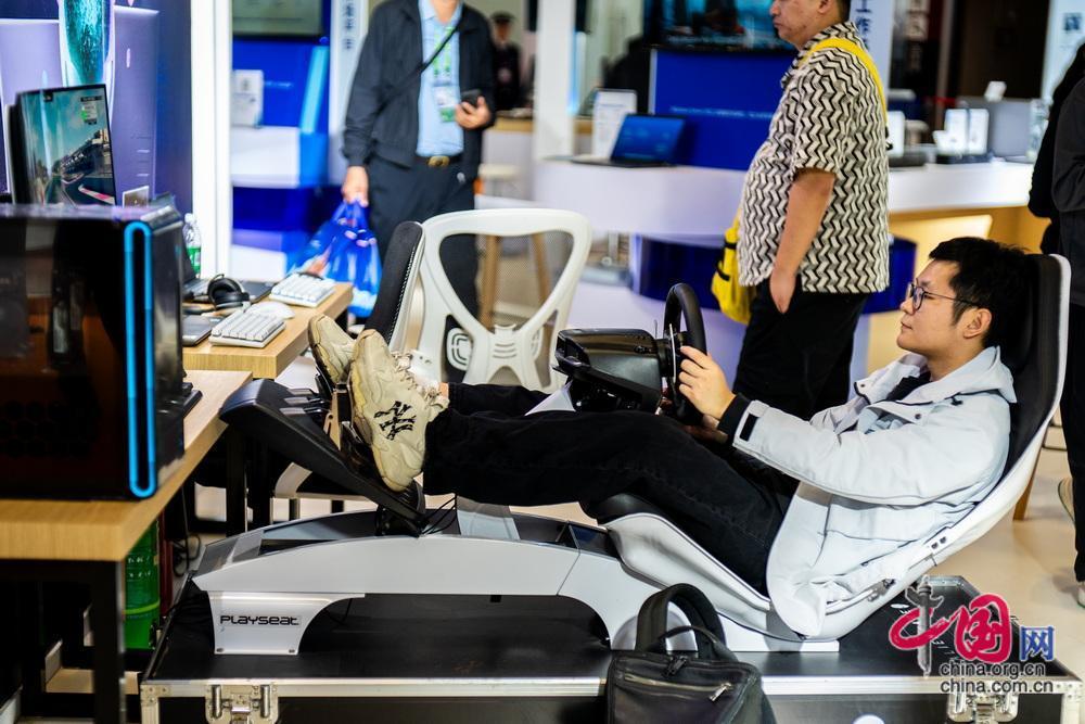 展區(qū)體驗?zāi)M駕駛游戲。中國網(wǎng)記者