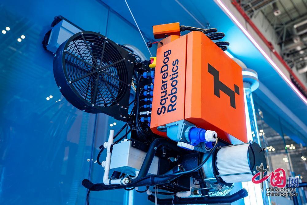 進博會人工智能專區(qū)展示的外墻清潔機器人。中國網(wǎng)記者