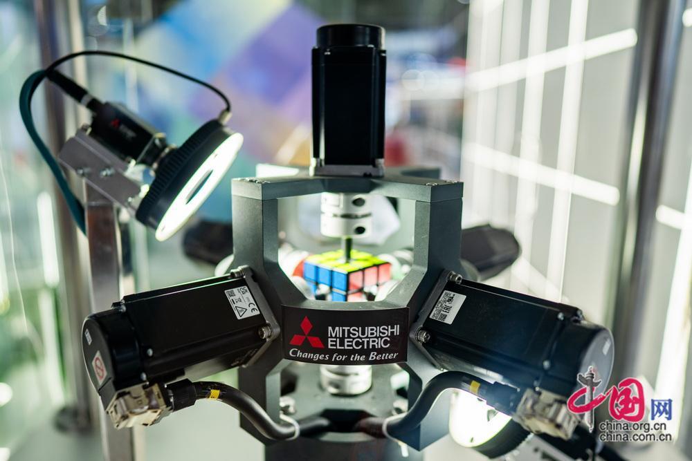 三菱帶來的魔方機器人,該機器人曾打破魔方復(fù)原吉尼斯世界紀(jì)錄。中國網(wǎng)記者