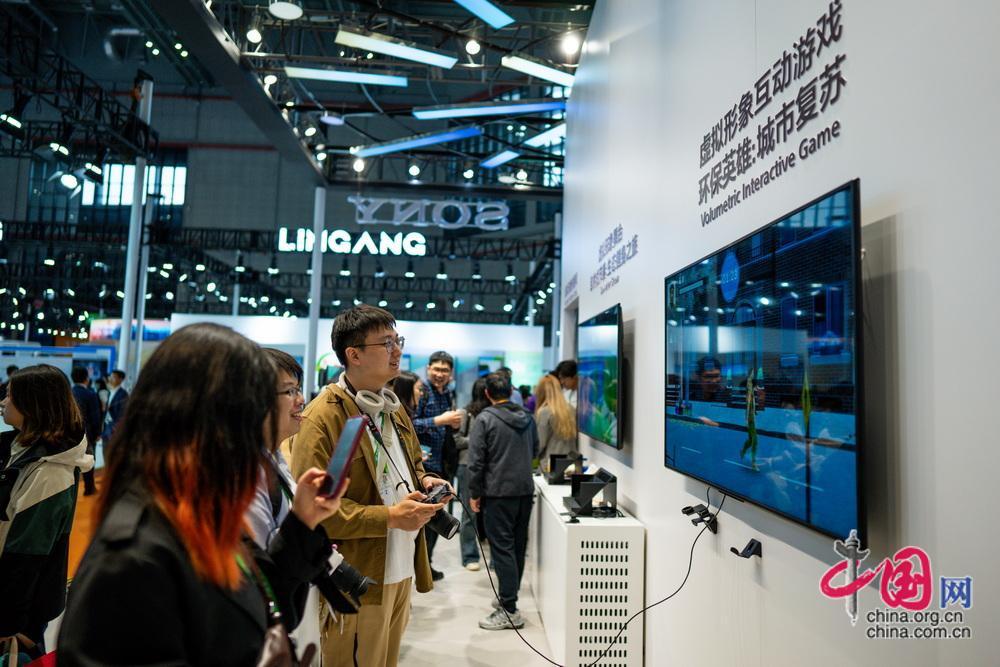 觀眾體驗虛擬形象互動游戲。中國網(wǎng)記者