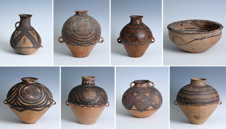 意大利返還中國(guó)的新石器時(shí)代馬家窯彩陶器(11月5日攝,拼版照片)。新華社記者 李賀 攝