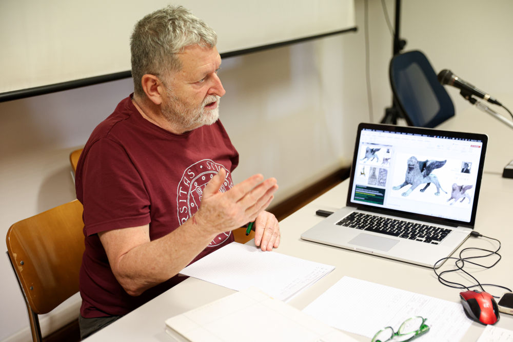 11月5日,意大利帕多瓦大學文化遺產(chǎn)學院教授馬西莫·維達萊介紹“威尼斯之獅”研究相關情況。新華社記者李京攝