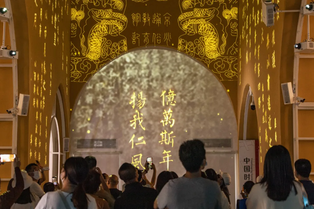 作為北京中軸線15處遺產(chǎn)構(gòu)成要素之一,鐘鼓樓于2019年啟動(dòng)文物修繕及展示提升工作,該工作被納入《北京中軸線申遺保護(hù)三年行動(dòng)計(jì)劃》。記者步入鼓樓一層,各券洞相互連通、明亮開敞。徜徉其中,展覽“時(shí)間的故事”回溯著鐘鼓樓和北京中軸線保護(hù)傳承的故事。忽見遮光簾落下、光影秀開場(chǎng),觀眾皆循響起的音樂匯聚到展廳中央,或舉起相機(jī),或靜靜欣賞。吊裝在兩旁白色拱形鋼結(jié)構(gòu)下的投影儀投射出萬道光線,讓觀眾在光影變幻間走進(jìn)那段“暮鼓晨鐘”的歷史記憶。