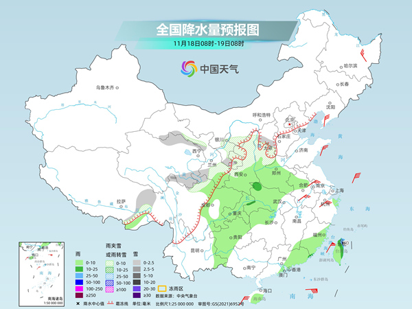 具體來(lái)看,中央氣象臺(tái)預(yù)計(jì),今天,內(nèi)蒙古河套地區(qū)、西藏東北部、青海北部和東南部、川西高原北部、甘肅河西和南部、寧夏大部、陜西中北部、山西中南部等地部分地區(qū)有小到中雪或雨夾雪。陜西南部、河南大部、安徽西部、湖北中西部、湖南北部、四川盆地、重慶、貴州大部、云南東部、福建東部和南部、廣東東部、海南島、臺(tái)灣島等地部分地區(qū)有小到中雨,其中,臺(tái)灣島東北部等地部分地區(qū)有大到暴雨。
