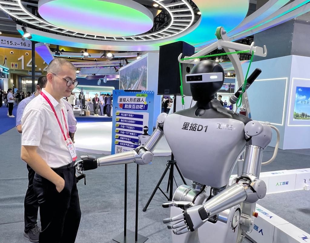 圖為“里掂人形機器人”和觀眾交流互動。新華社發(fā)(李俊豪 攝)