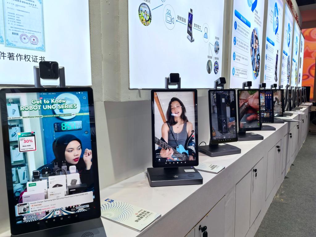 在廣東智慧音視頻科技有限公司的展位前,一排多功能直播智慧機引起了觀眾的濃厚興趣。該公司跨境電商負責(zé)人告訴記者,越來越多的中小企業(yè)嘗試“直播+電商”的出海模式,這款產(chǎn)品內(nèi)嵌了短視頻直播的云導(dǎo)播臺,同時借助外貿(mào)專線,方便企業(yè)高效切入海外興趣電商的“賽道”。