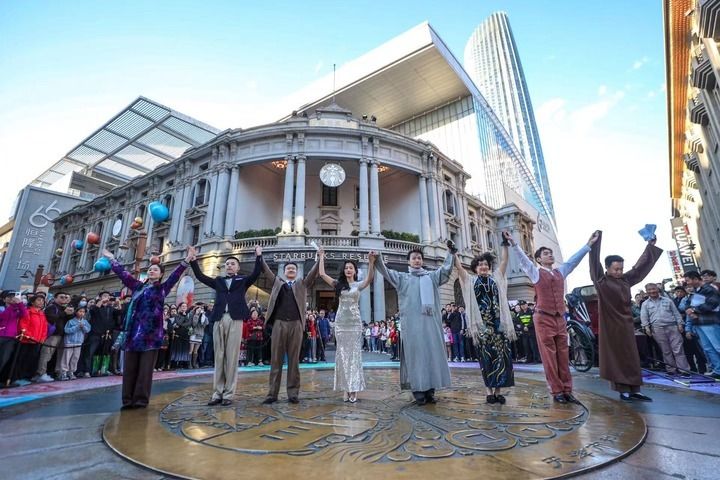 值得一提的是,主角佇立的露臺(tái),原是建于20世紀(jì)20年代初的浙江興業(yè)銀行,現(xiàn)在是連鎖咖啡品牌星巴克在天津的首家旗艦店。步入其中,西洋古典與現(xiàn)代時(shí)尚交融的設(shè)計(jì)感撲面而來,如今這一“網(wǎng)紅”咖啡空間,吸引著不少市民游客前來打卡體驗(yàn)。