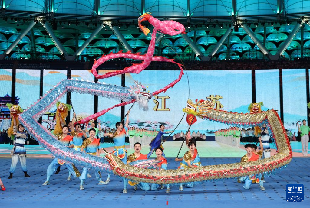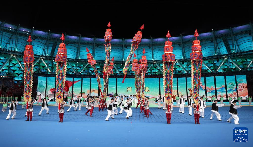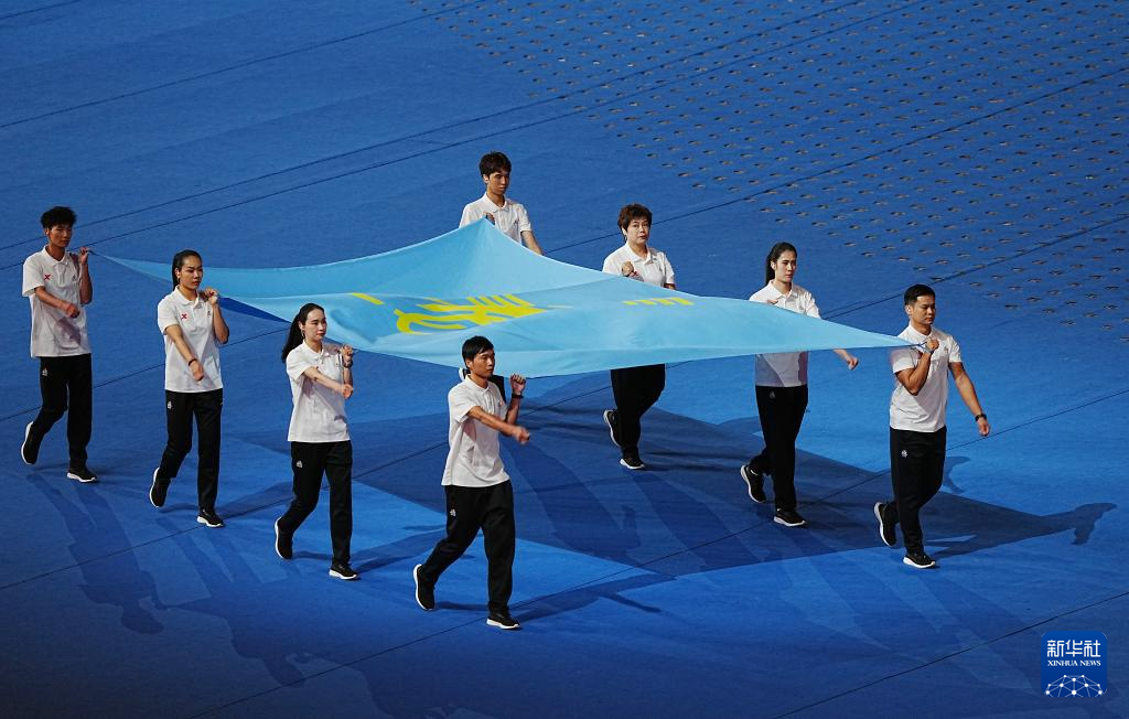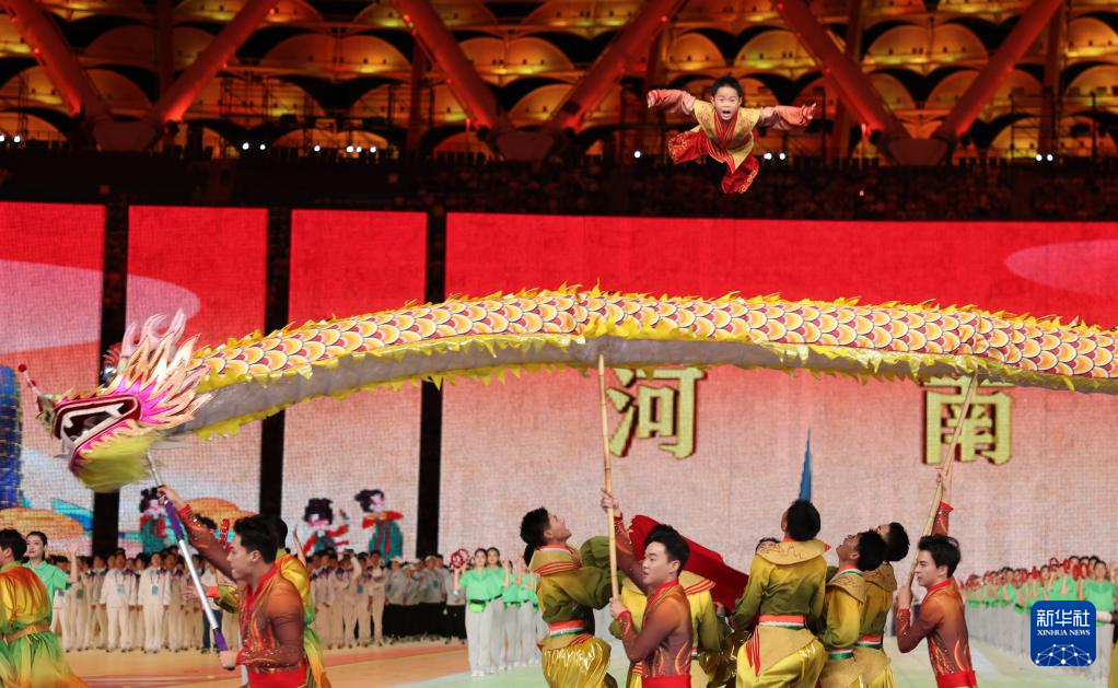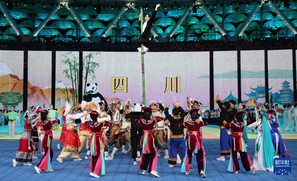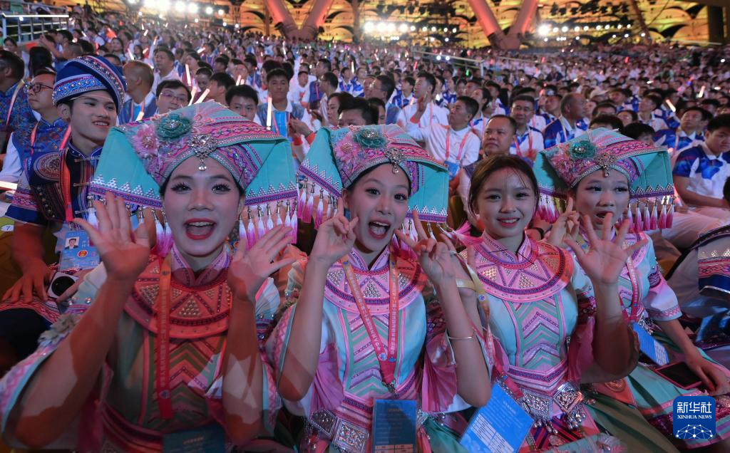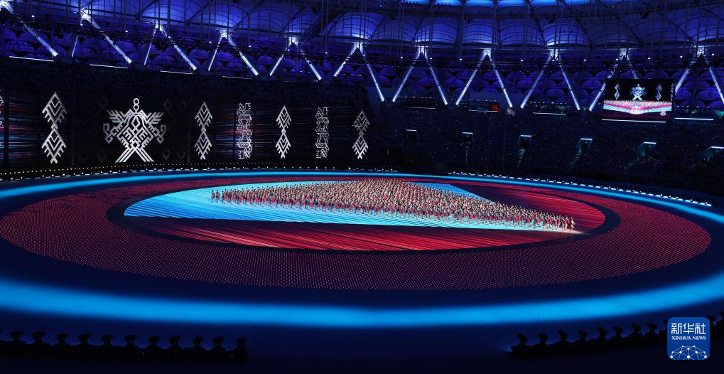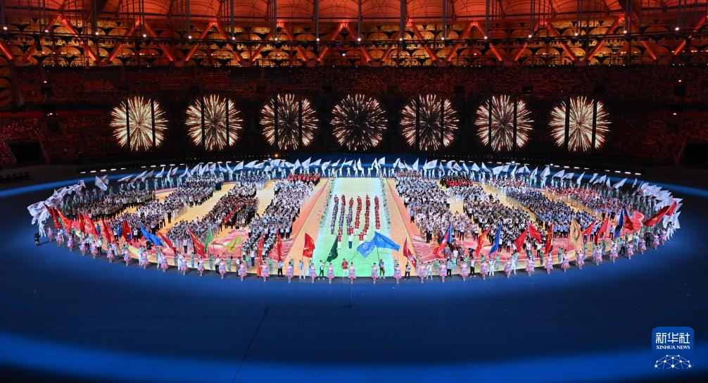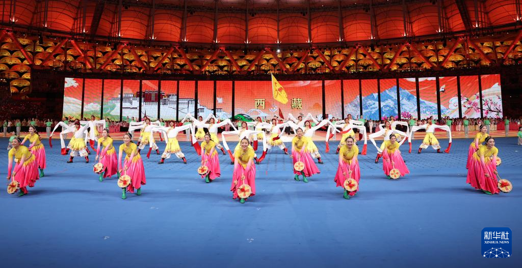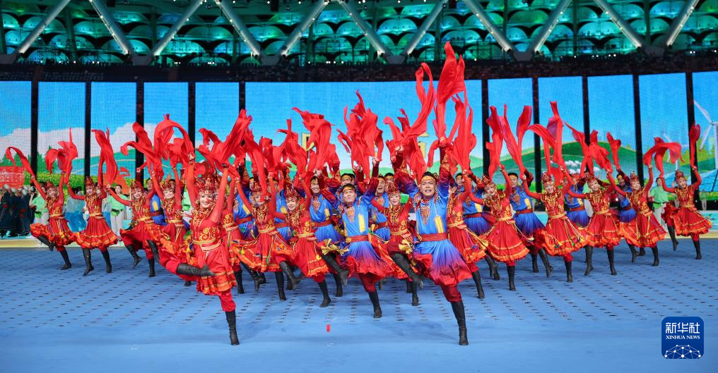 11月22日,開幕式現(xiàn)場升起中華人民共和國國旗、中華人民共和國少數(shù)民族傳統(tǒng)體育運動會會旗和中華人民共和國第十二屆少數(shù)民族傳統(tǒng)體育運動會會旗。
