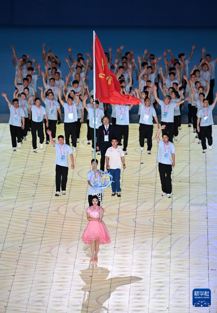 11月22日,黑龍江省代表團在開幕式上入場。