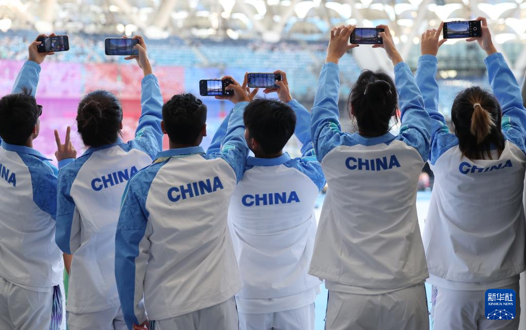 11月22日,河北省代表團運動員在開幕式前拍照留念。