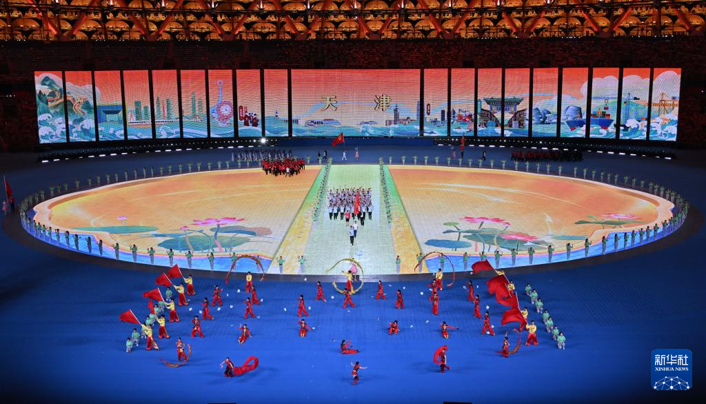 11月22日,天津市代表團在開幕式上入場。