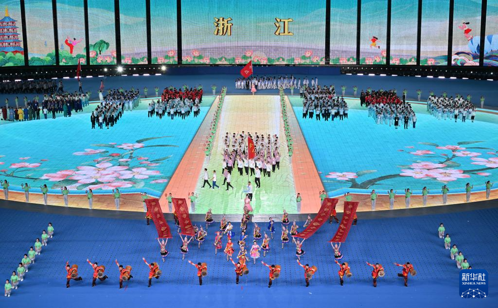 11月22日,浙江省代表團在開幕式上入場。