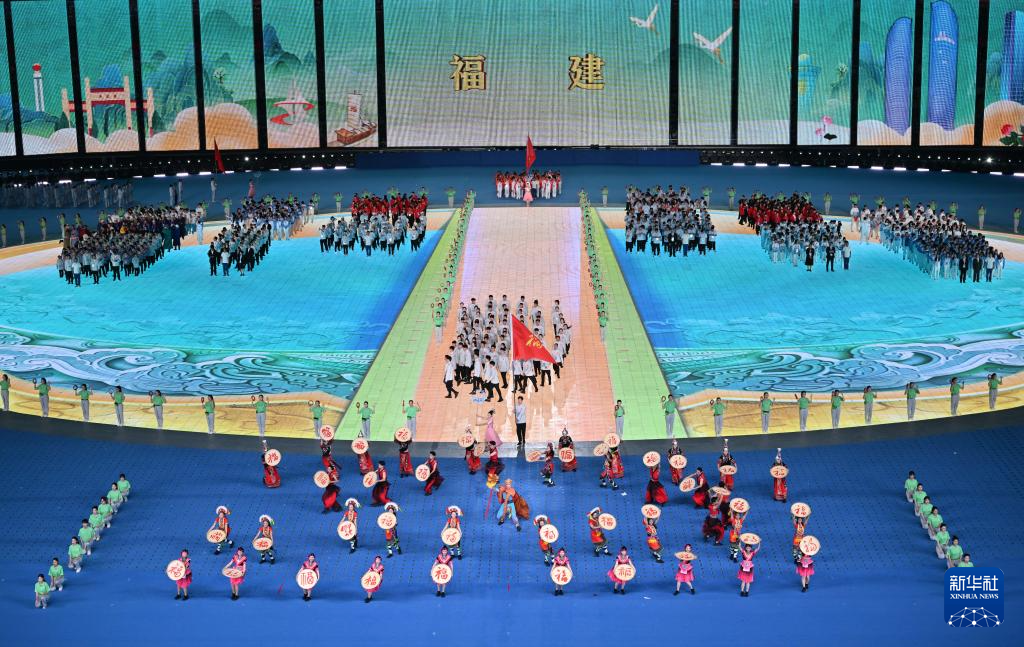 11月22日,福建省代表團在開幕式上入場。