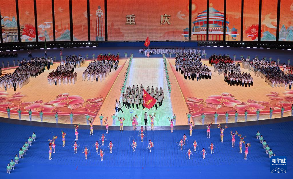 11月22日,重慶市代表團在開幕式上入場。