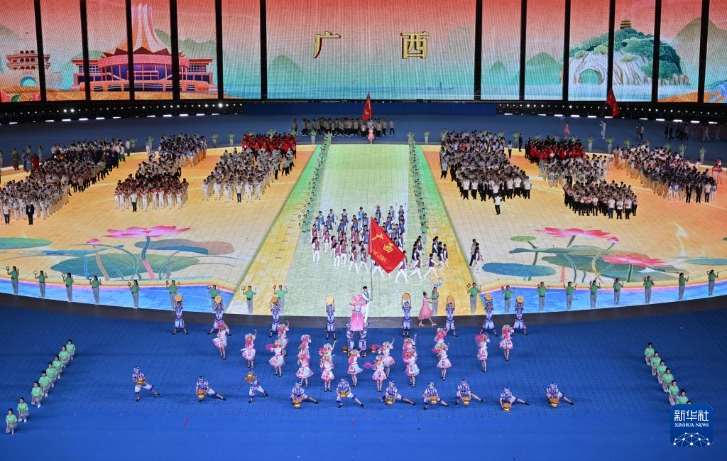 11月22日,廣西壯族自治區(qū)代表團在開幕式上入場。