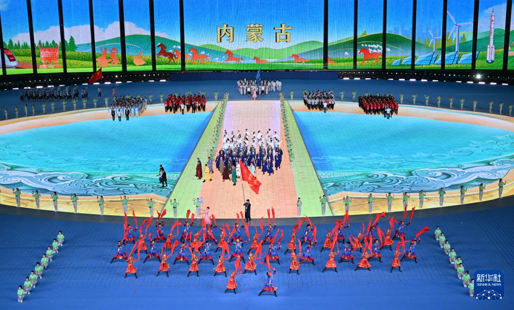11月22日,內(nèi)蒙古自治區(qū)代表團在開幕式上入場。