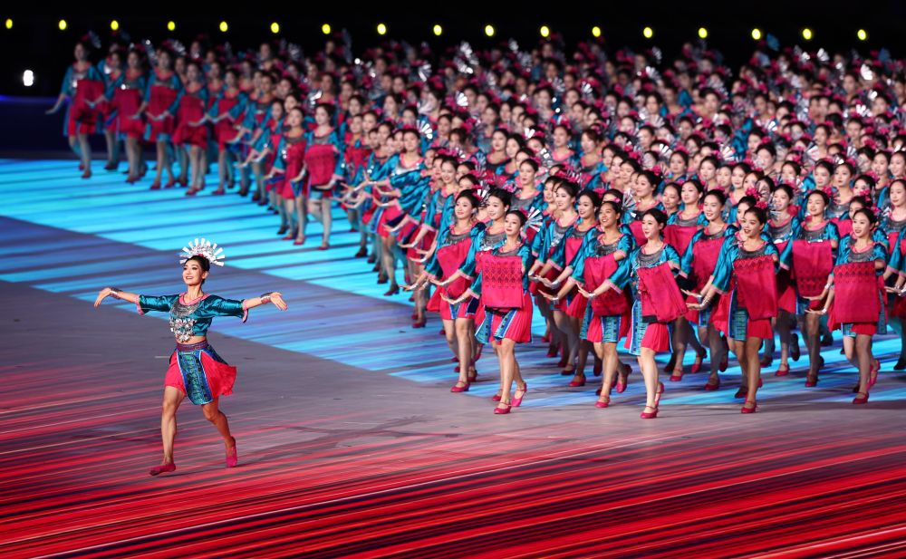 各個(gè)代表團(tuán)入場(chǎng)時(shí),都伴隨30秒的駐停表演,在展示民族文化與地方特色的同時(shí),也為觀眾帶來一場(chǎng)視聽盛宴。