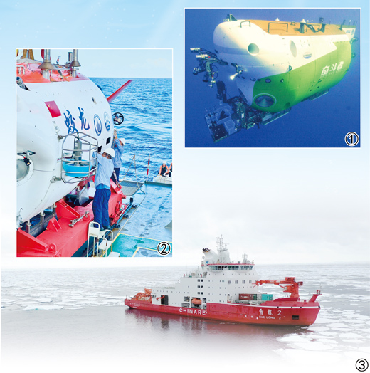 圖①:“奮斗者”號注水下潛。中國科學(xué)院深??茖W(xué)與工程研究所供圖