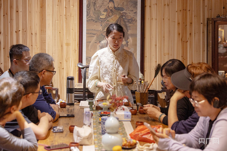 在倒扒獅街,“90后”安慶姑娘秦無顏是一家文化主題會館的主理人。在她的會館里,檀木、玉石等制作而成的新中式文玩飾品、傳統(tǒng)工藝面料制作而成的“新中式”服裝、古色古香的“新中式”茶館,定期舉行的雅集活動……無一不體現(xiàn)著獨特的東方美學。2020年,在上海從事珠寶設計工作的她返回家鄉(xiāng)經(jīng)營起這家文化空間?!凹戎鹦?,也尋根。”她希望,客人來到這里,放慢腳步,在交流與體驗中感受傳統(tǒng)文化的魅力,豐富精神體驗。