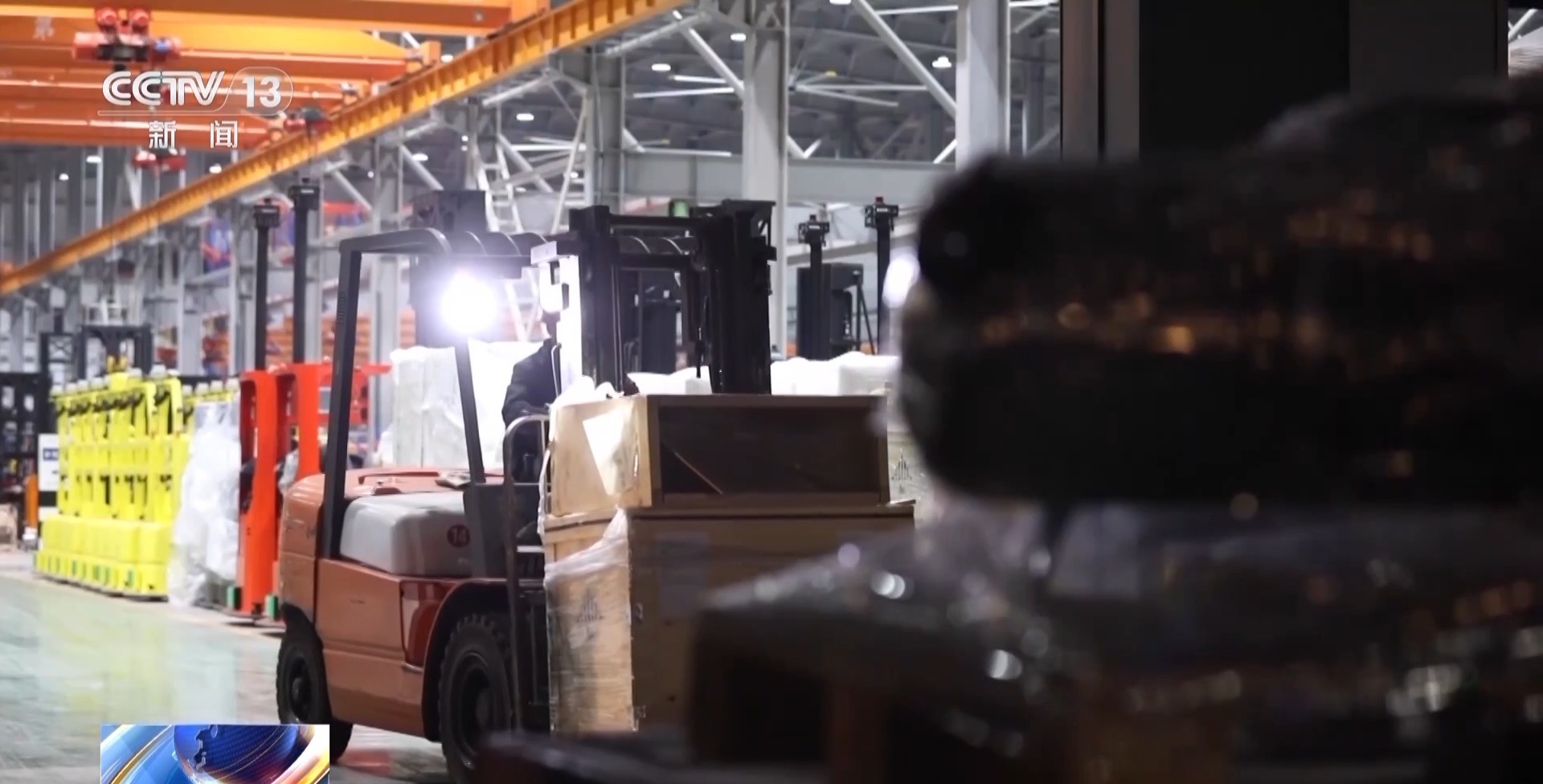 夜里兩點,安徽合肥的這家叉車生產(chǎn)企業(yè),發(fā)貨區(qū)里依然熙來攘往,五輛卡車依次排隊,上百噸貨物等待出發(fā)。