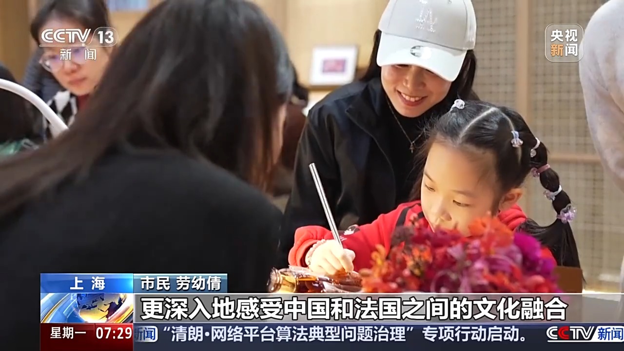 上海市民 勞幼倩:這邊有很多體驗(yàn)區(qū)域,讓小朋友也有動手能力,更深入地感受中國和法國之間的文化融合。